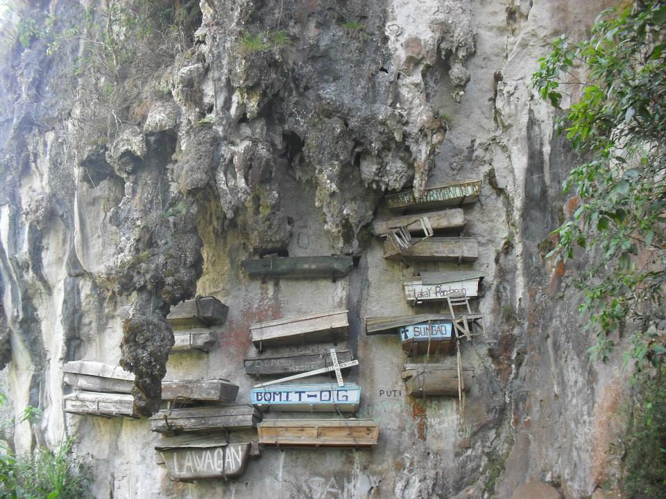 To continue the trail we passed by at their cemetery, Kuya Duval informed us that one of the SAF members who died in Fallen 44 was buried in there cemetery.(Sorry, I don’t have the photo of his grave.) After that, we’ve just reached the Echo Valley! That’s why they call it Echo Valley because when you shout out loud, you can hear the echo of your voice hahaha! You can also do rapelling and rock climbing!!!But I haven’t tried it! Too expensive eh!hahaha After the Echo Valley, 30 minutes walking from it is the Hanging Coffins, a lit bit of information..the latest coffin that was hanged was in 2010. After taking some pictures of it, we decided to go down further and to trek at the Latang Underground River. It was too dark to pass in this underground river and too cold inside, you will only see limestone rock formation and some of stalactite formation and you can hear the murmur of waters.Kuya Duval says, that you can do picnic inside the Underground River but for us we don’t want it because we are too afraid of dark and bats hahaha