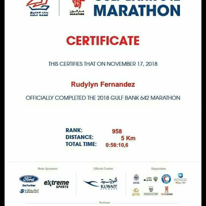 As a first timer in marathon, it is not easy to do it at first because no preparation was done a week before but very lucky that I prepared my mind to get a goal to finish it in an hour or less. Running and in between walking is the best thing to do so that’s what I did. Been lucky that Im used to do a brisk walking so I didn’t feel tired while doing it.