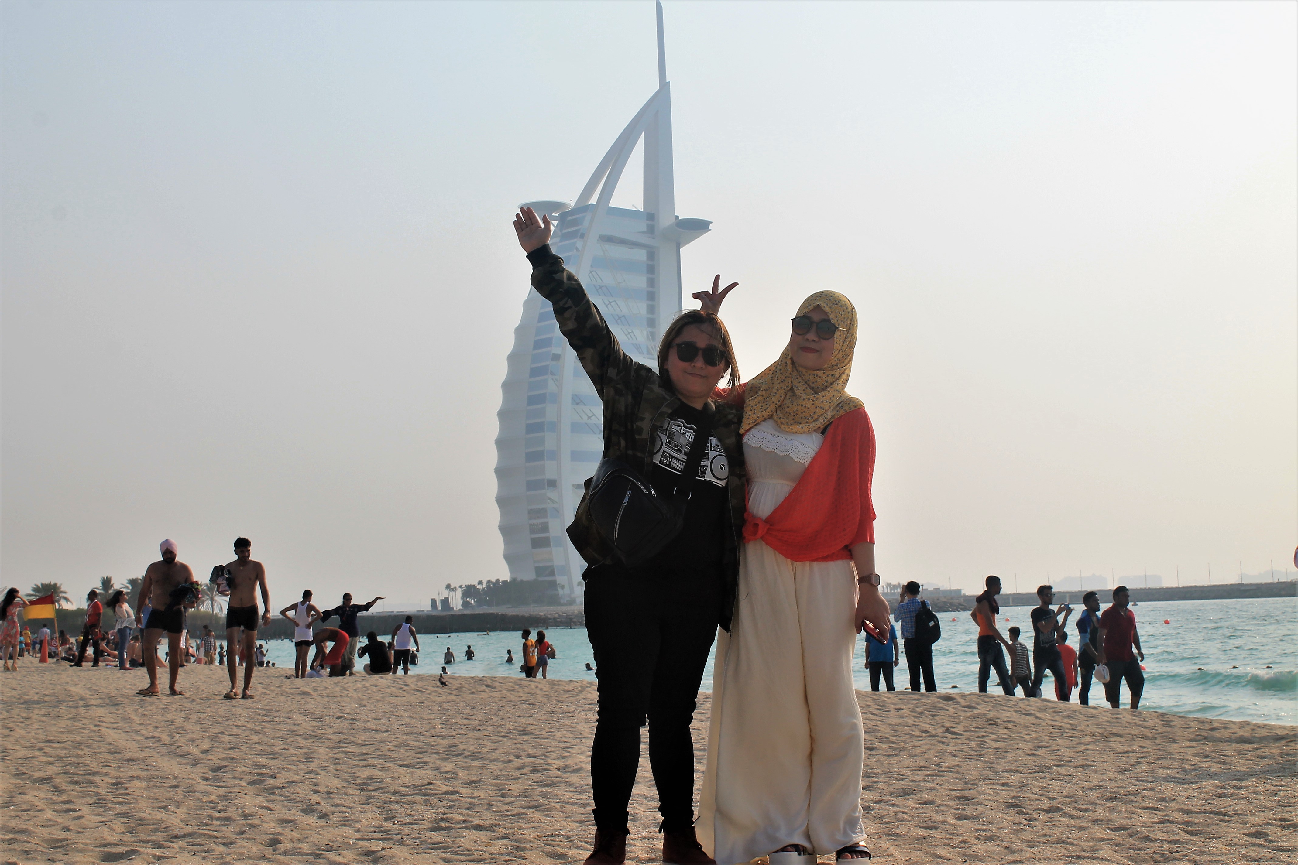 After strolling around the busy shoreline of Umm Sequim beach not minding the scorching heat of the sun, we stopped for a while along the entrance of the famous Burj Al Arab.