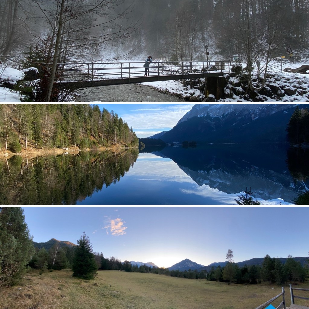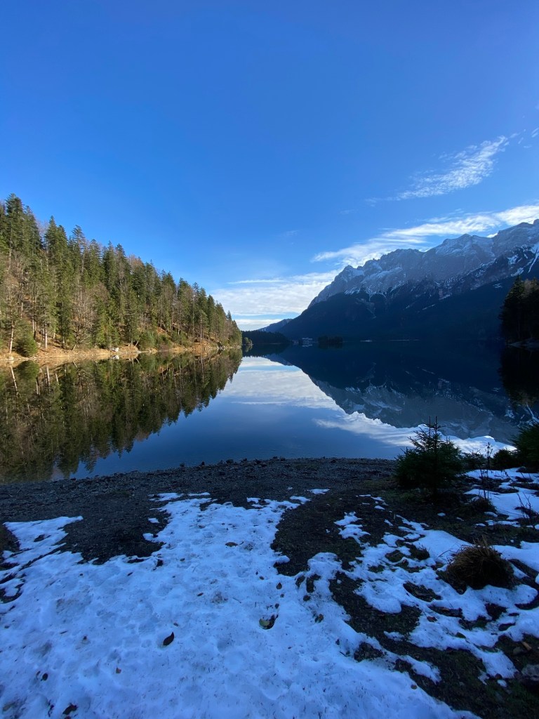 There is a lovely circular trail around the lake, with stunning views of Zugspitze. In Autumn, the changing colors of leaves, the transition of autumn vibes to winter vibes can be seen on one side of the lake (as you can see in the picture).