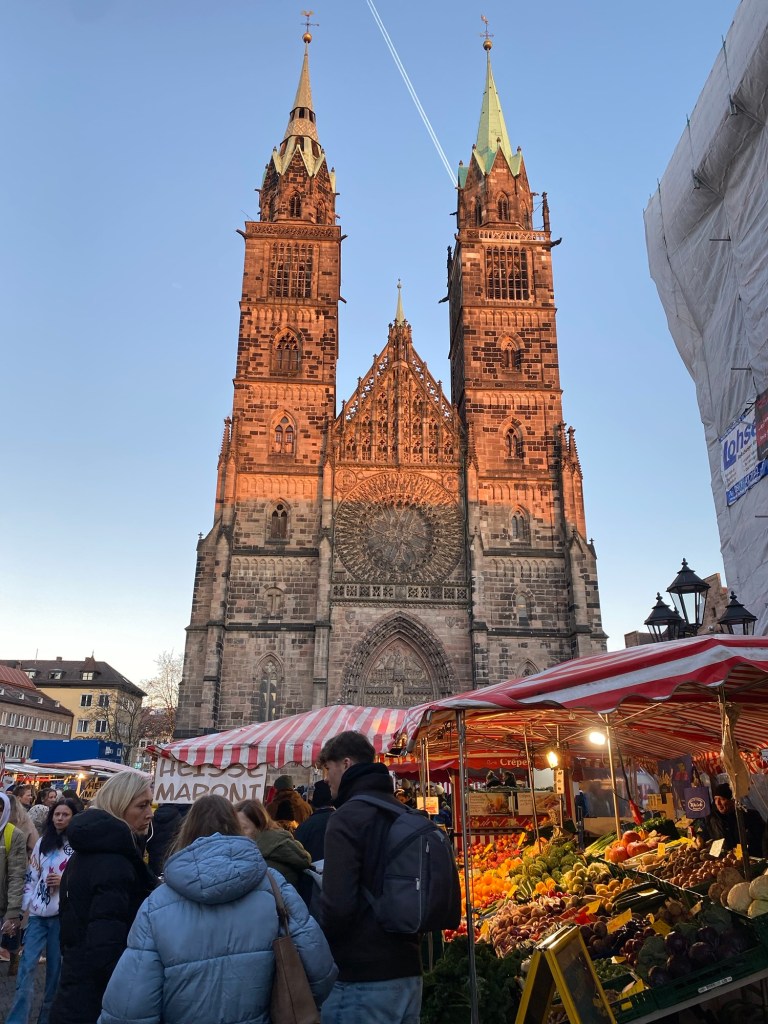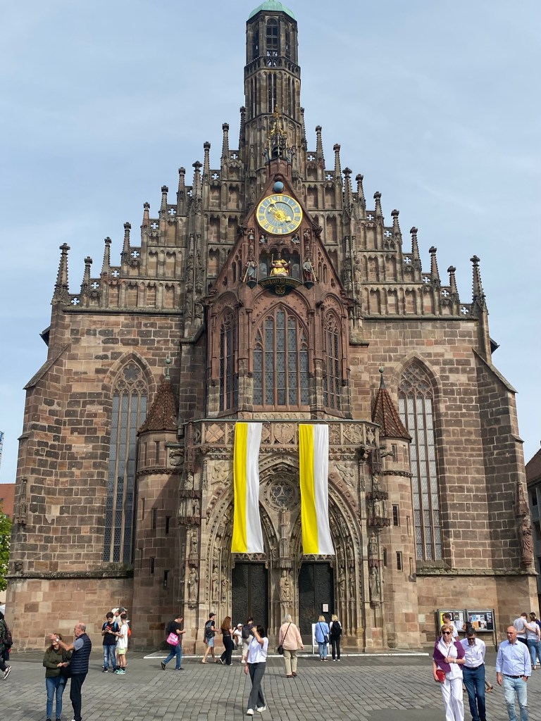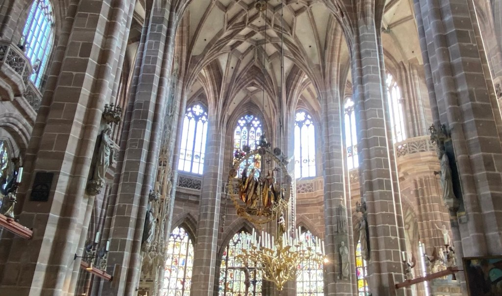 We started at St. Lorenz Church, one of Nurembergâs most stunning Gothic landmarks. The moment we stepped inside, we were struck by the soaring ceilings and the intricate stained-glass windows glowing with soft morning light. It’s peaceful, imposing, and humbling all at once.