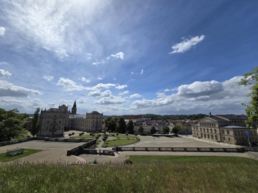 From the town center, I made my way (by bus) to 🏰Schloss Callenberg, located just outside Coburg. This lesser-known palace is surrounded by peaceful forest and hosts the Ducal Family Museum with portraits, hunting trophies, and historic memorabilia. It’s quiet, less crowded, and offers a more personal glimpse into Coburg’s aristocratic past. You can see here the view of Veste Coburg.